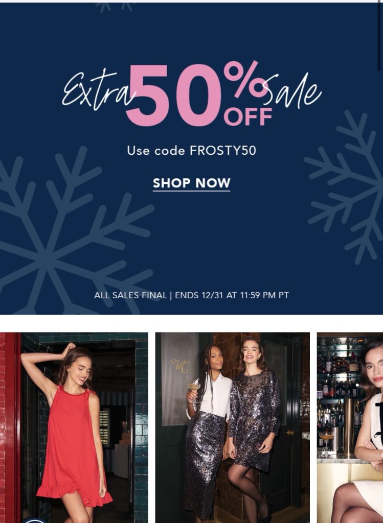 Take an EXTRA 50% off all Draper James sale items! 👉🏽USE CODE: FROSTY50 to activate your extra savings! GET IT HERE