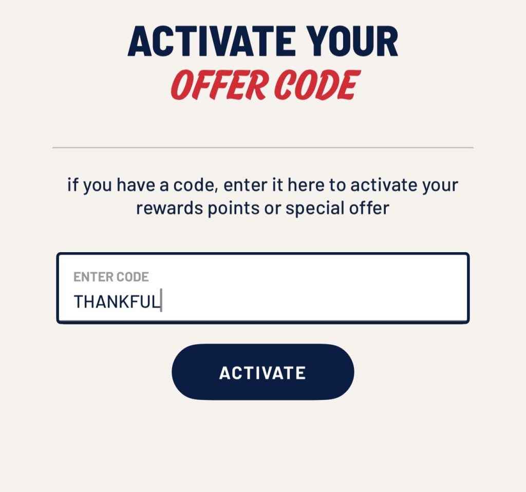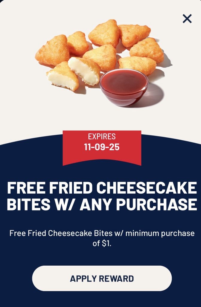 - Use Code: THANKFUL for the cheesecake bites (any purchase, typically $1+).